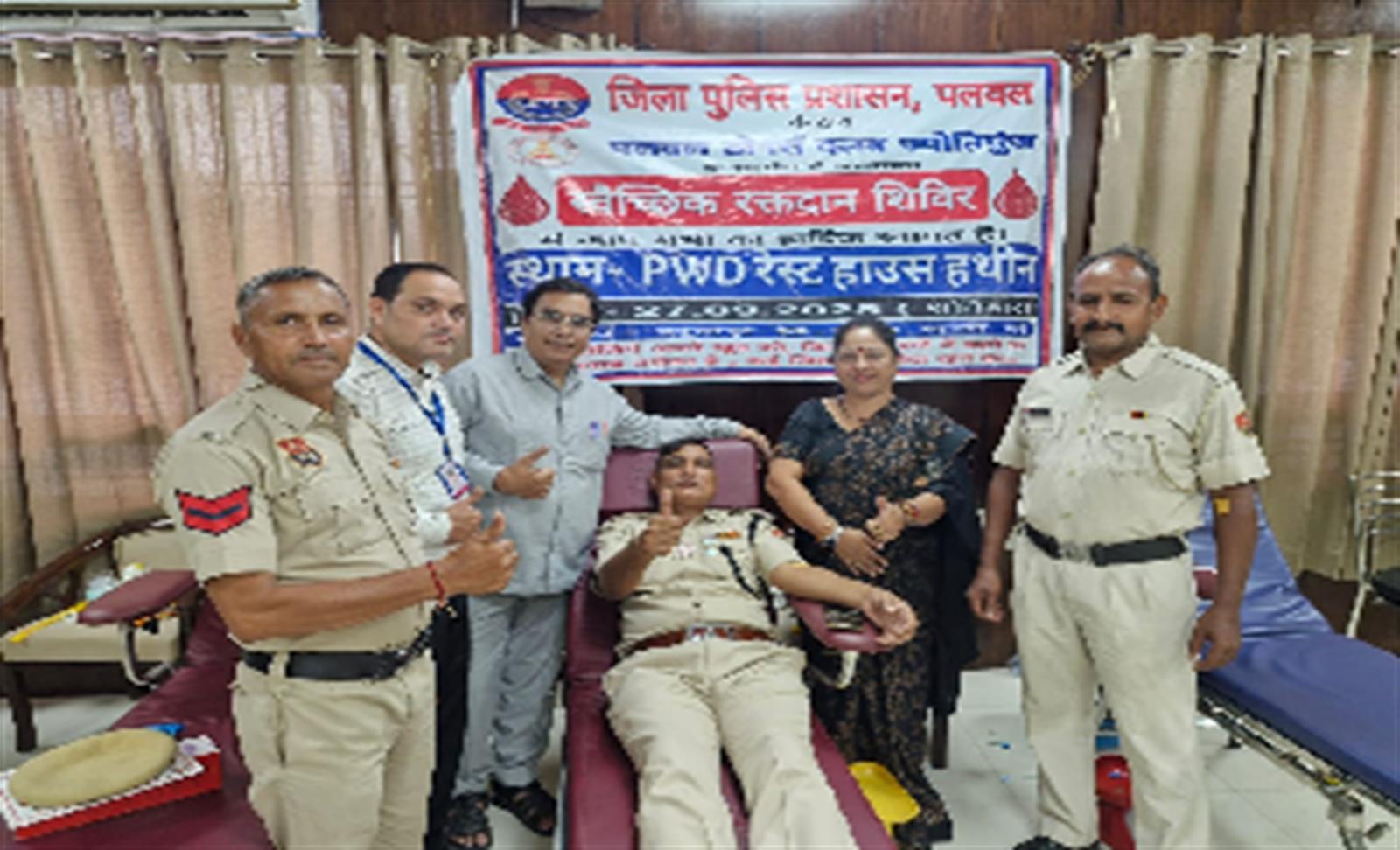 कुलवंत कौर के साथ बंसी लाल की रिपोर्ट। हरियाणा पुलिस ने सेवा पखवाड़ा के तहत समाज सेवा का एक प्रेरणादायक उदाहरण पेश करते हुए जिला पलवल के एस पी वरुण सिंगला के मार्गदर्शन में हथीन में पलवल डोनर्स क्लब ज्योतिपुंज के सहयोग एक स्वैच्छिक रक्तदान शिविर आयोजित किया। शिविर का संयोजन हथीन एस एच ओ हरी कृष्ण, क्लब के मुख्य संयोजक आर्यवीर विकास मित्तल, सह संयोजक अल्पना मित्तल ने किया ।शिविर का उद्घाटन हथीन के डीएसपी महेन्द्र सिंह ने रिबन काटकर किया। उन्होंने रक्तदाताओं को बैच लगाकर सम्मानित किया और उनकी निस्वार्थ सेवा भावना को सराहा।उन्होनें यह भी कहा कि रक्तदान जीवनदान है और पुलिस केवल कानून-व्यवस्था की रखवाली तक सीमित नहीं, बल्कि मानवता की सेवा में भी अग्रणी भूमिका निभा रही है।