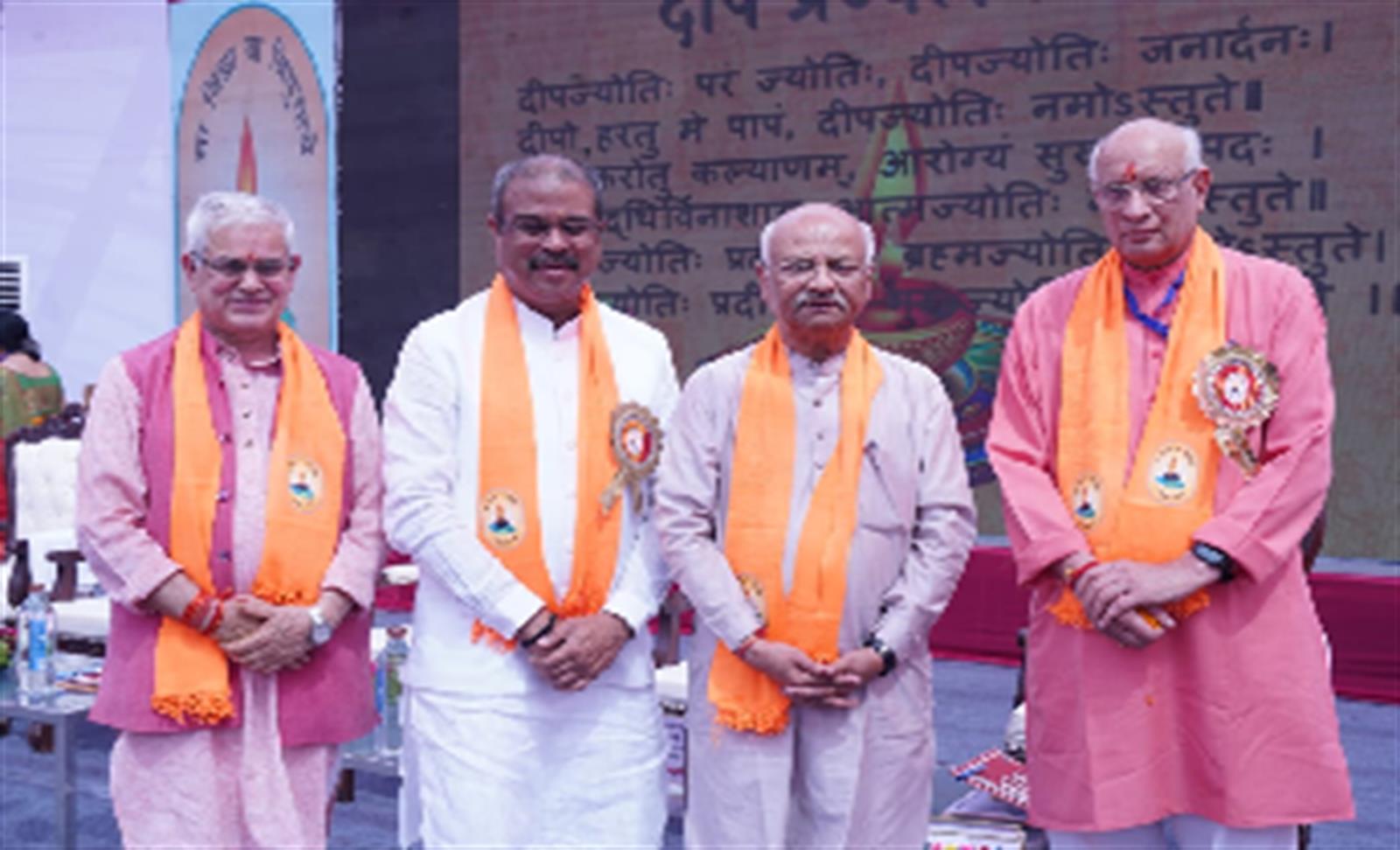 मुख्य अतिथि धर्मेंद्र प्रधान ने अपने उद्बोधन में विद्या भारती को शिक्षा, भाषा एवं कौशल विकास के क्षेत्र में एक महत्वपूर्ण “रेफरेंस पॉइंट” बताया। उन्होंने कहा कि राष्ट्रीय शिक्षा नीति में मातृभाषा में शिक्षा, बैगलेस डे, शिक्षक प्रशिक्षण एवं कौशल विकास जैसे अनेक प्रावधान विद्या भारती के प्रयोगों से प्रेरित हैं। पूज्या आनंदमूर्ति गुरु माँ ने अपने उदबोधन में विद्या भारती द्वारा दूरदराज, सीमांत एवं नक्सल प्रभावित क्षेत्रों में किए जा रहे कार्यों की सराहना की तथा इसे राष्ट्र निर्माण की दिशा में महत्वपूर्ण योगदान बताया। उन्होंने आशा व्यक्त की कि नवीन केंद्रीय कार्यालय के माध्यम से संगठन अपने कार्यों को और अधिक गति प्रदान करेगा।